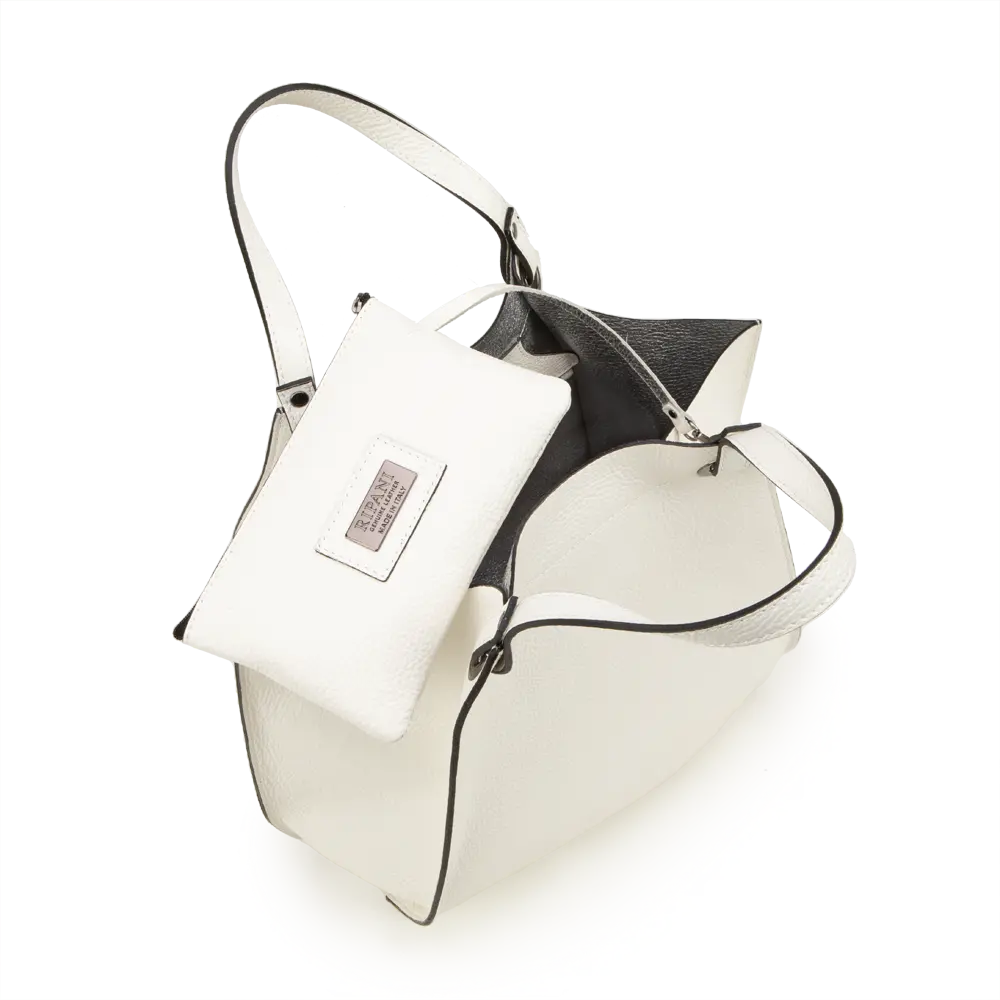 Airone is a soft double-sided leather bag, fully unlined. The model comes with an internal leather purse and a handmade leather threading shoulder strap.