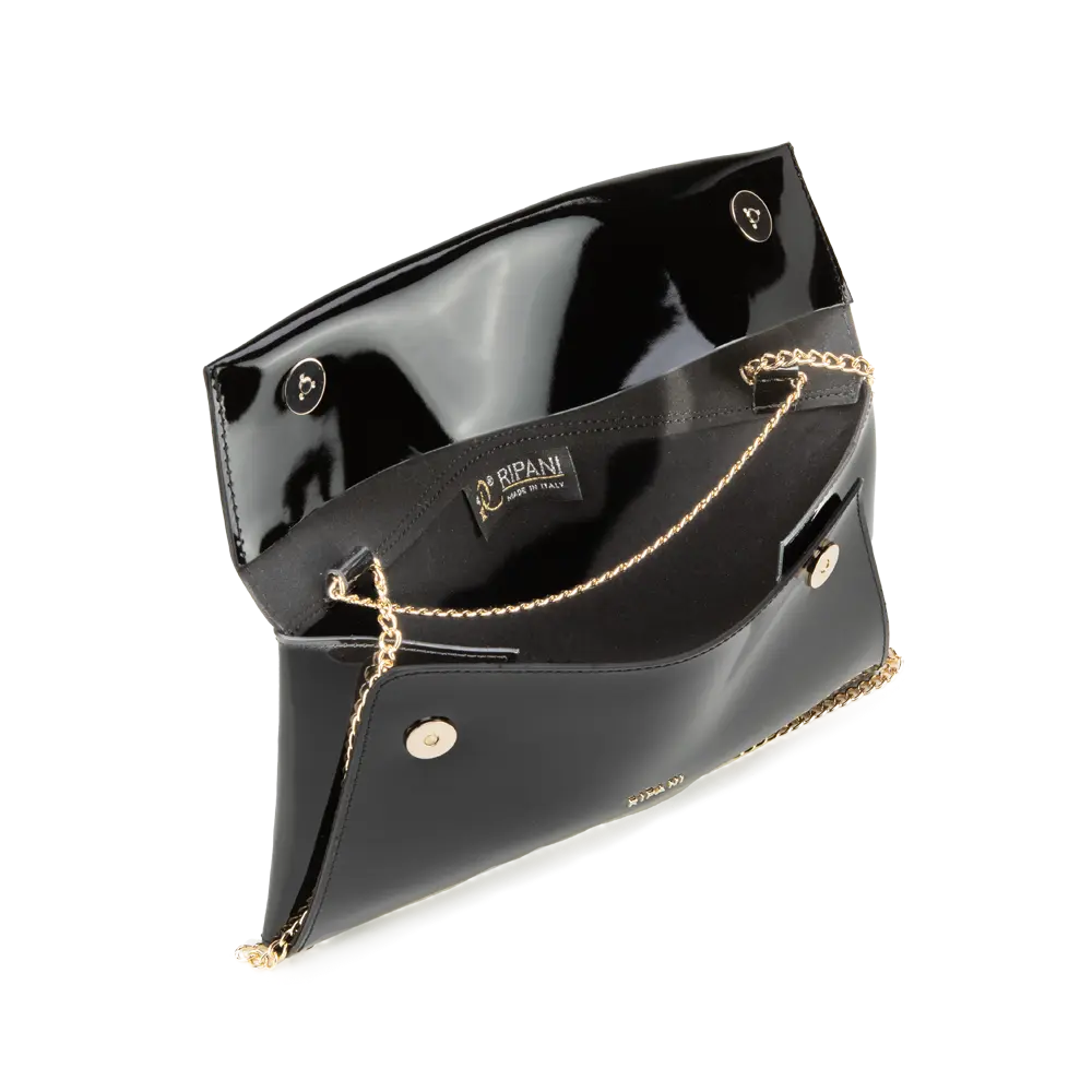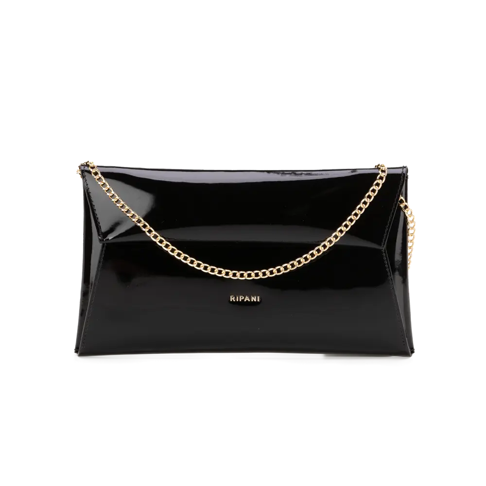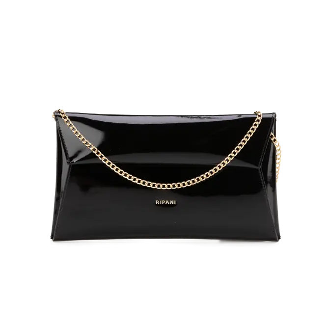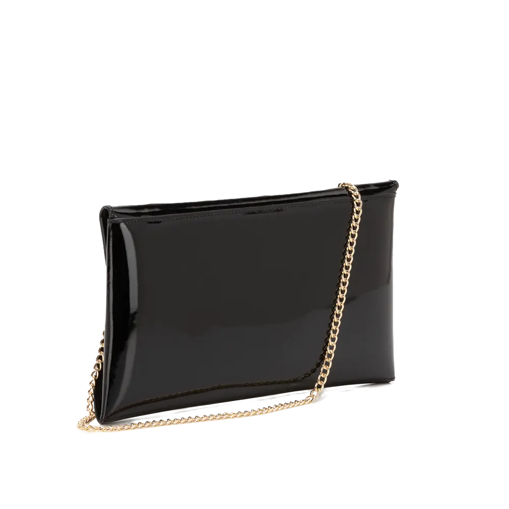Elegant flat bag with metal strap.