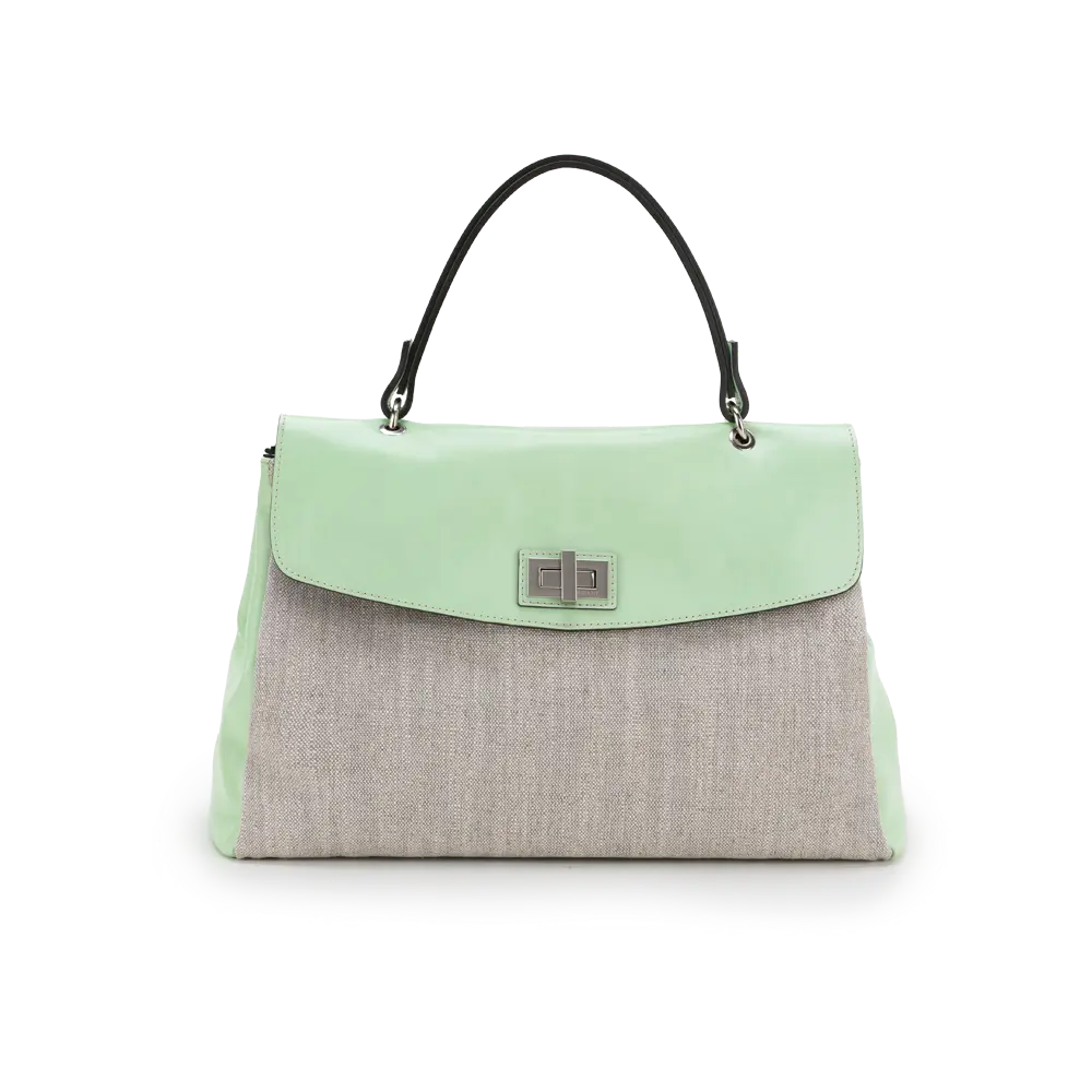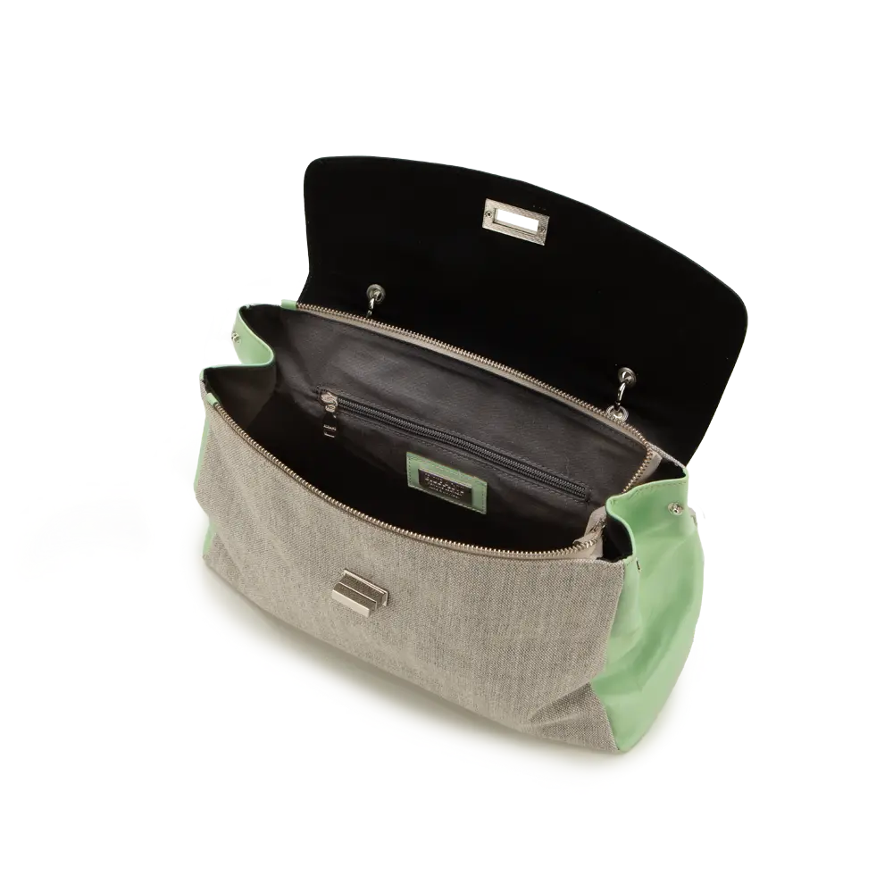 - Front flap with twist fastener - Inner cotton lining - Additional shoulder strap - Secret zipped pocket