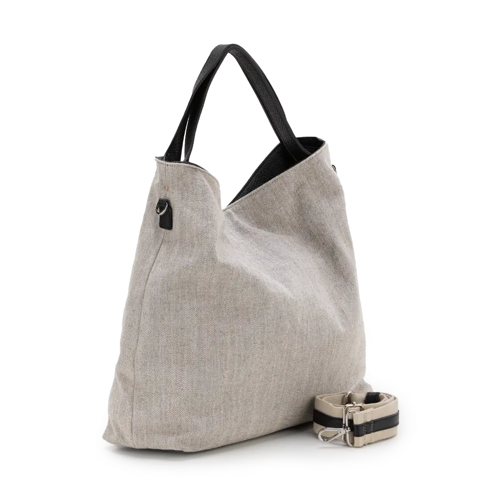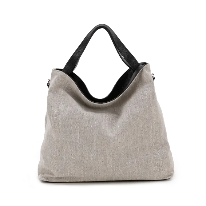 Linen-viscose fabric with genuine leather trim