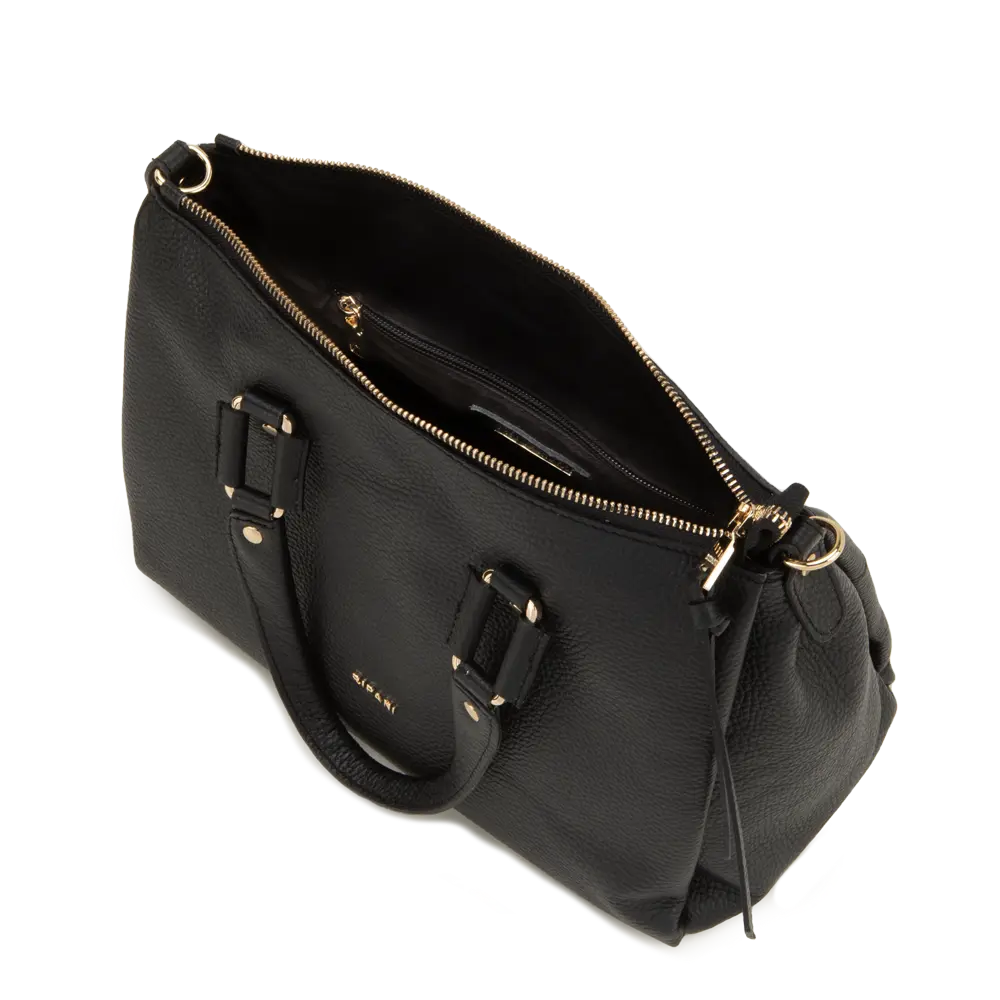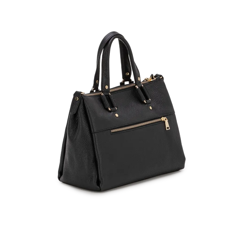 Zip closure, Additional leather shoulder strap, Inner cotton lining, Zip pocket and mobile phone pocket