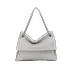 Flap and zip closure, double chain shoulder straps with leather shoulder pads, internal zip pocket, internal mobile phone holder