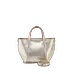 Genuine laminated deer effect leather with jeans effect interior, nickel accessories
