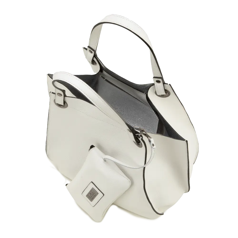 Zip fastening, Additional adjustable shoulder strap, Internal purse, Unlined bag
