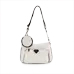 Multi-pocket crossbody bag with contrasting leather elements adorned with round key ring.