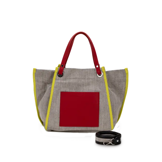 Zip fastening, Additional adjustable shoulder strap, External pocket, Unlined bag