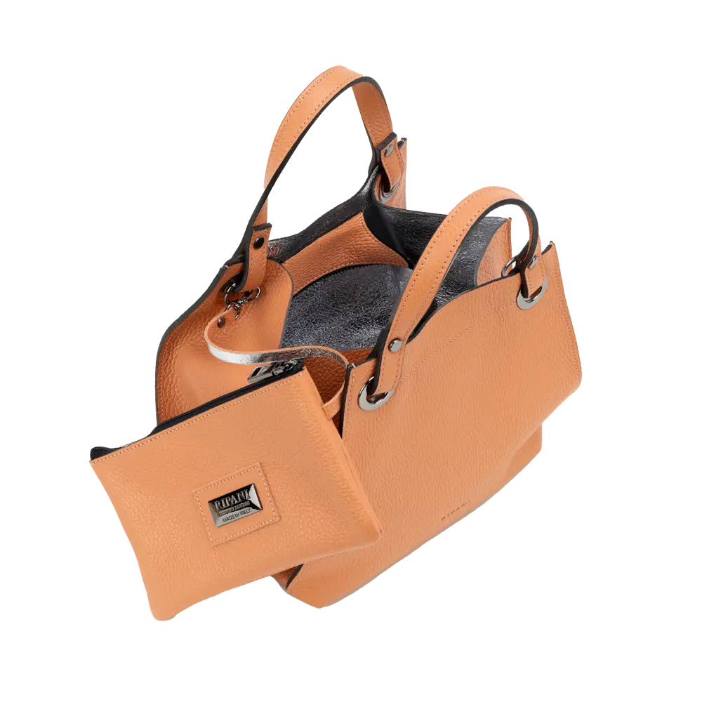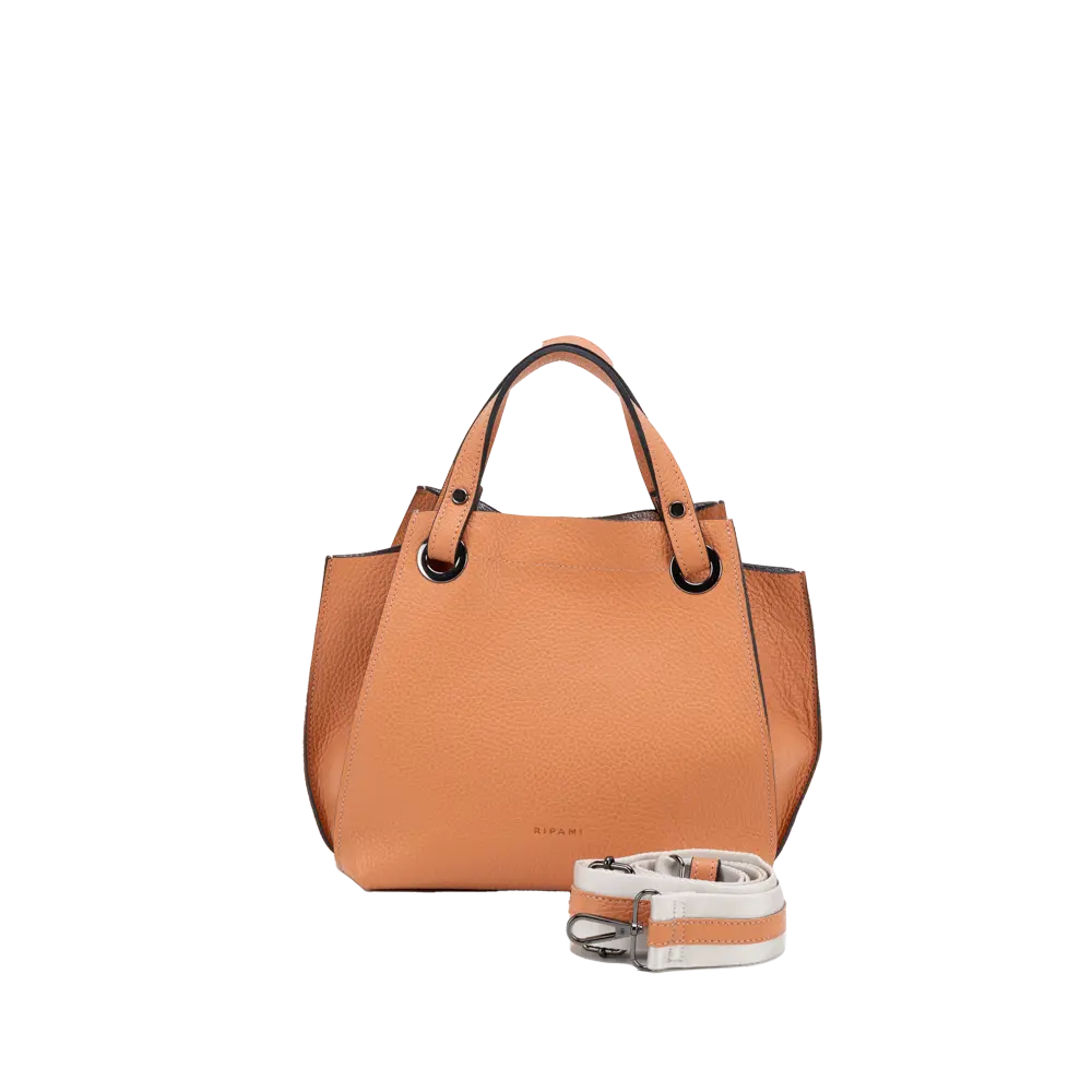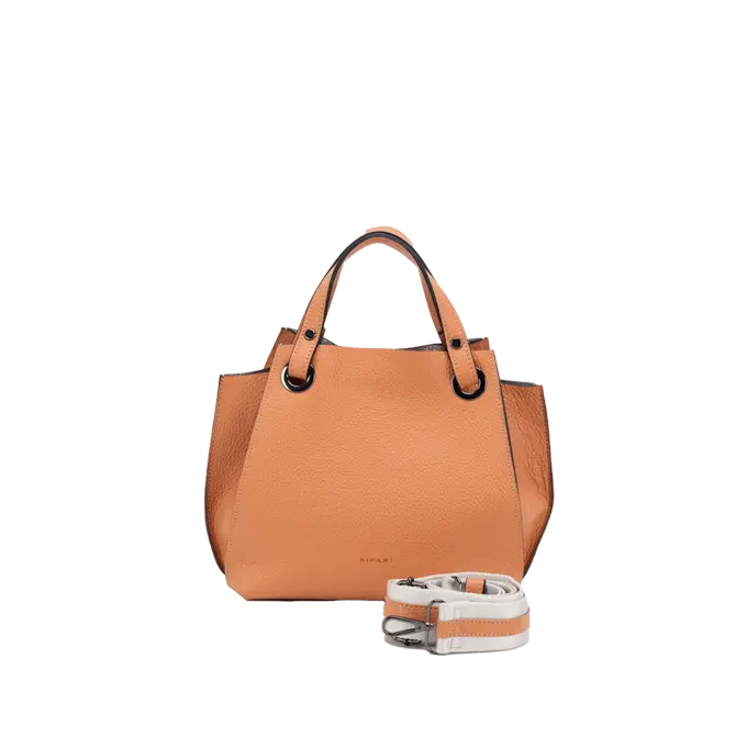 Unlined bag with laminated interior finish, additional shoulder strap, zip closure
