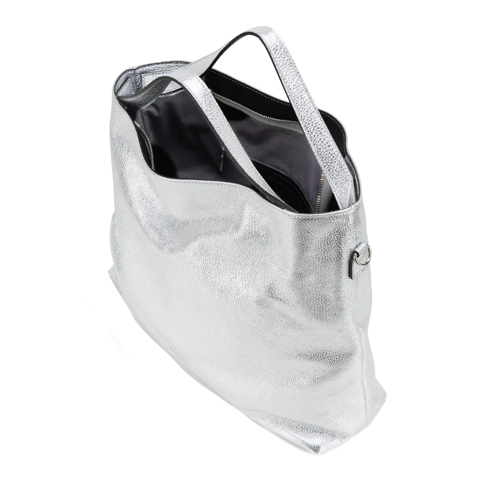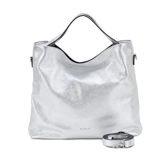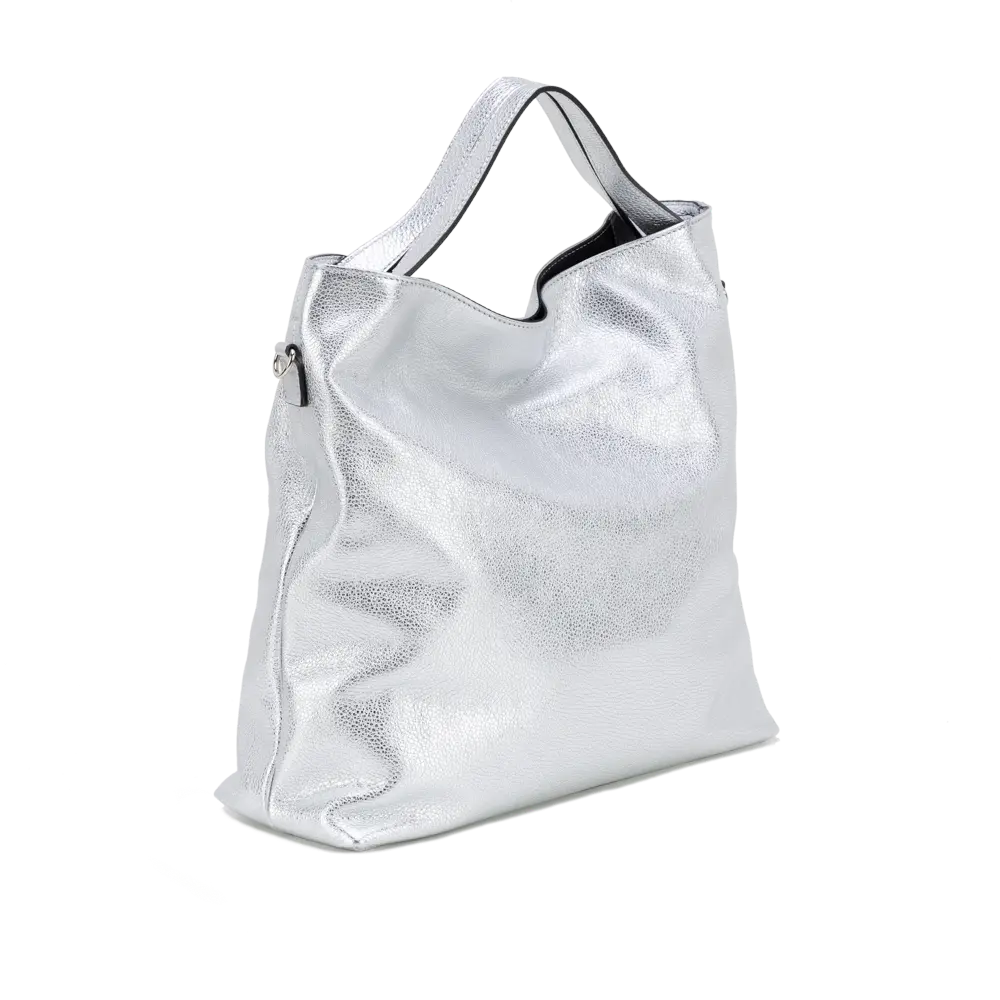 Genuine deer-effect leather with metallic finishing, Nickel accessories