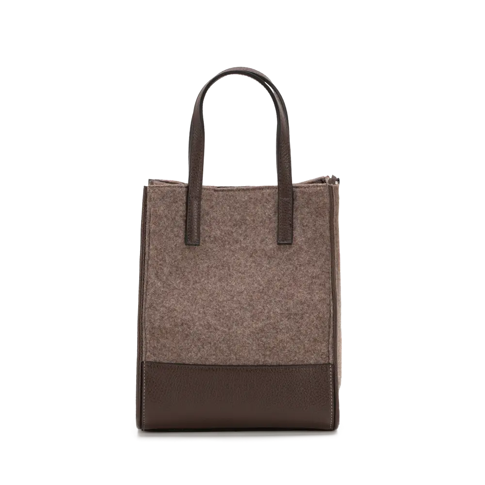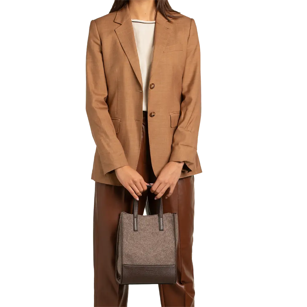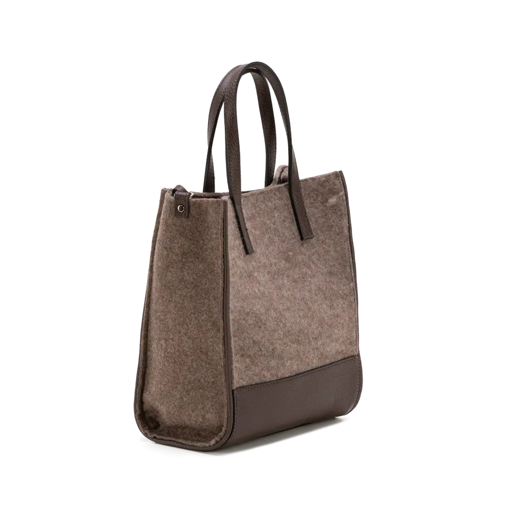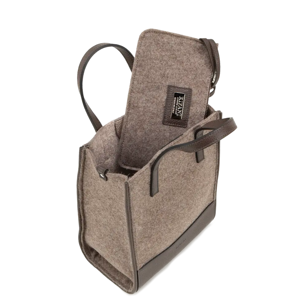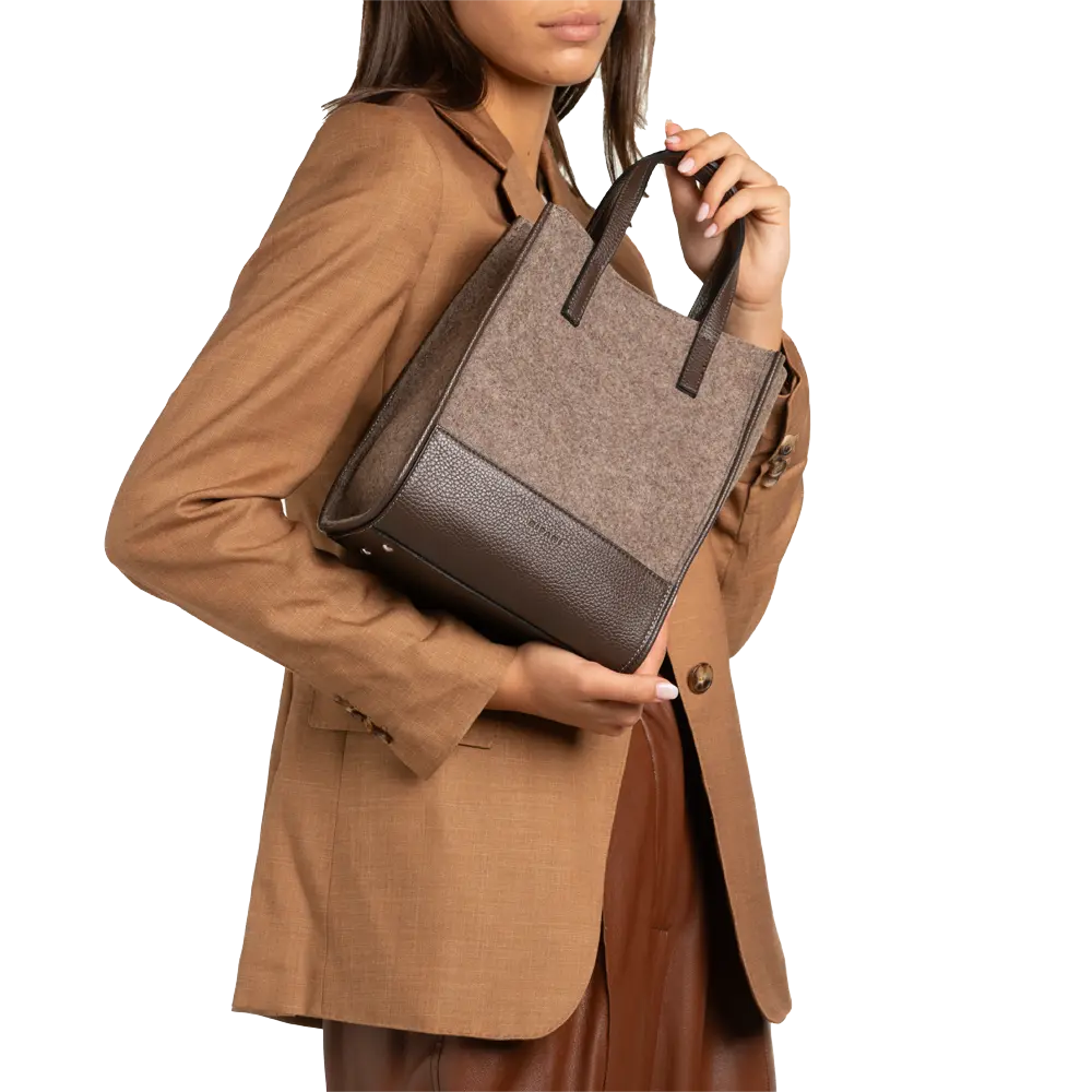 Hand bag made of genuine leather and recycled PET, with inside purse and additional strap.