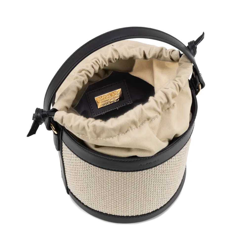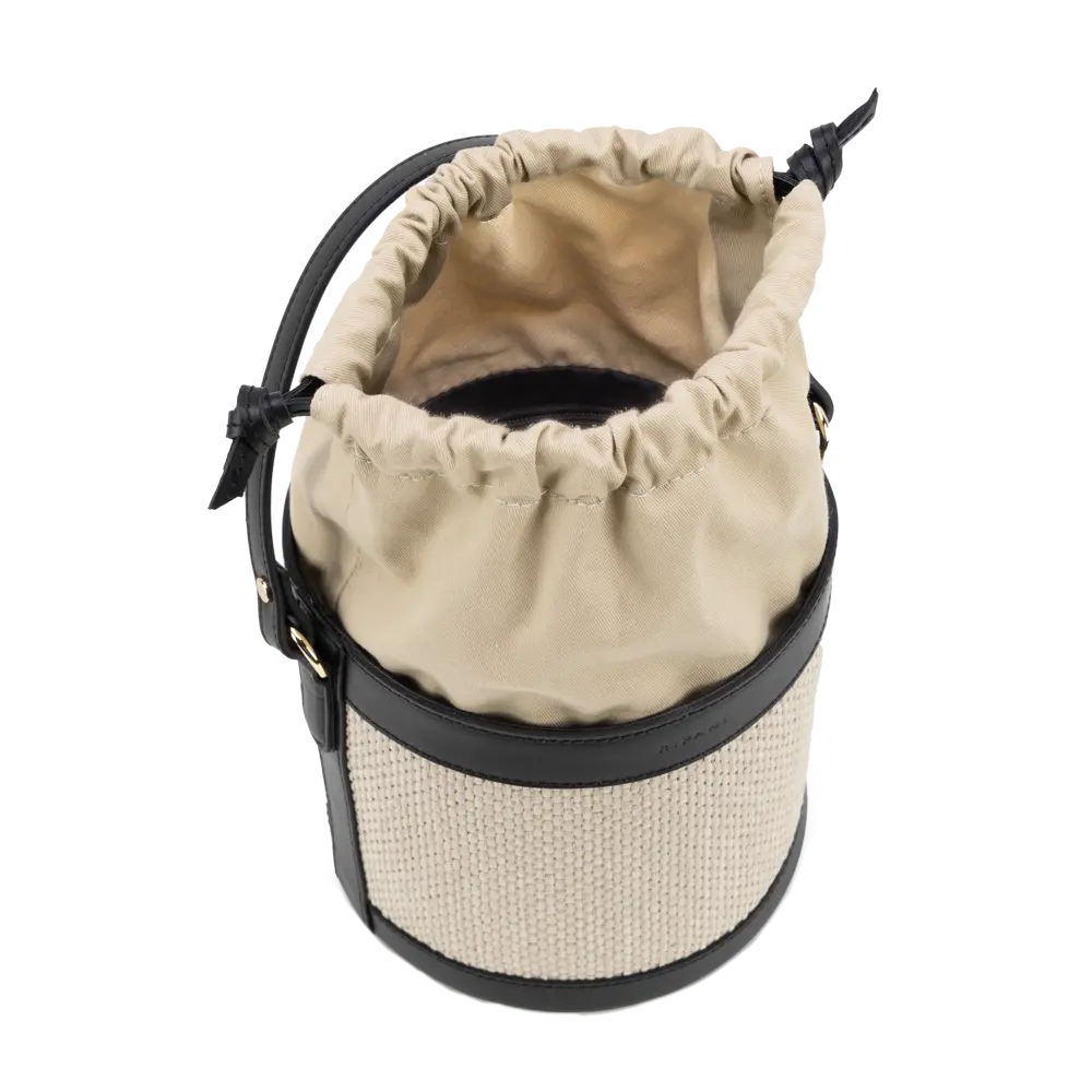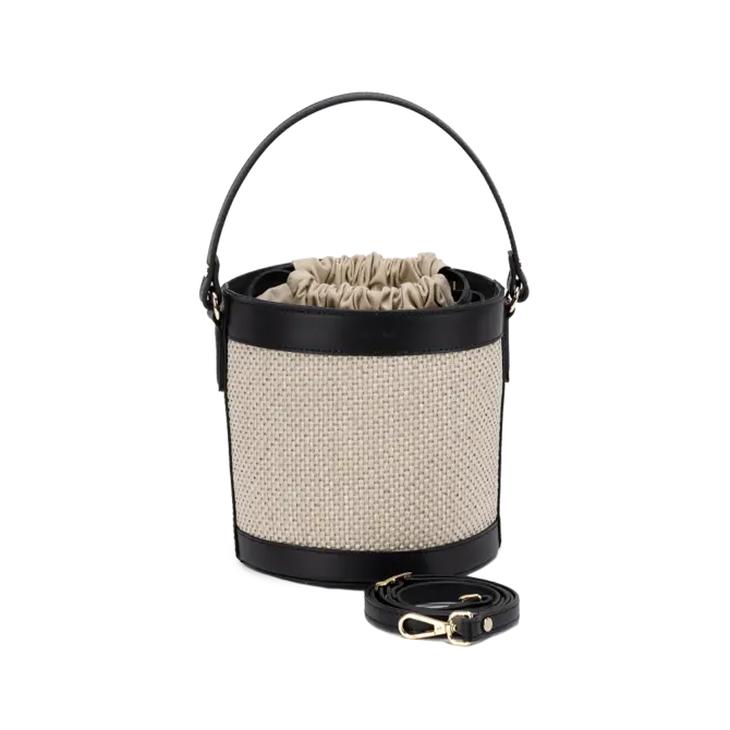 Drawstring closure, cotton lining, adjustable shoulder strap