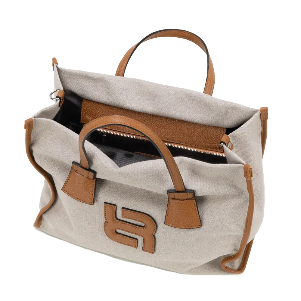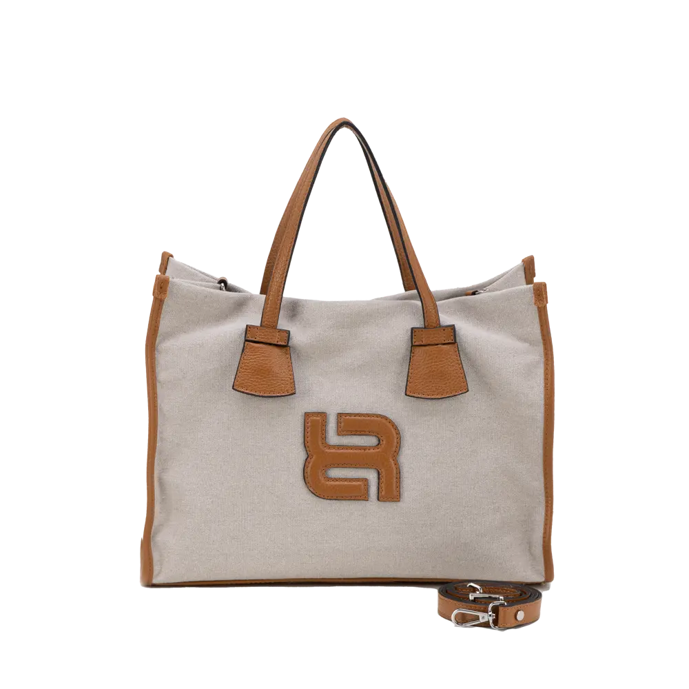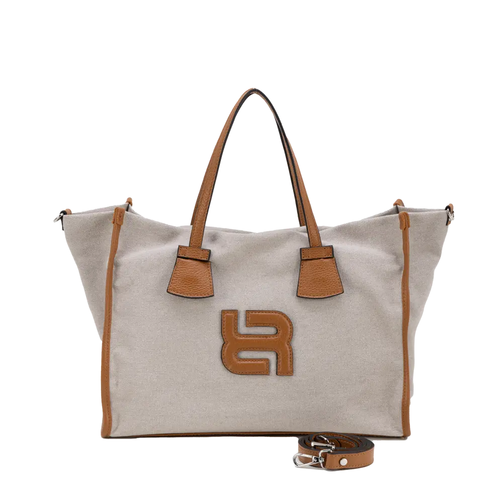 Zip closure, additional adjustable shoulder strap, embossed 'Double R' logo