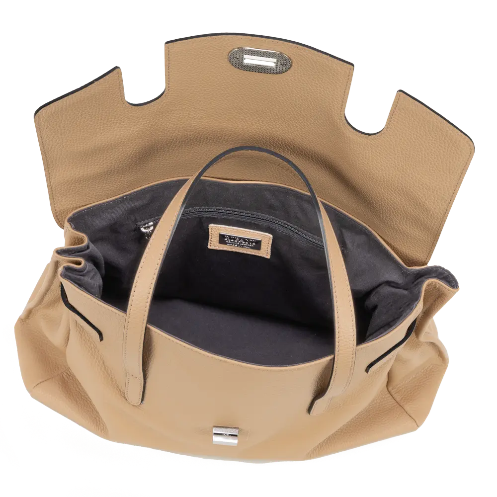 Bag with turn-lock closure,, inner pocket with zip closure, inner mobile phone pocket