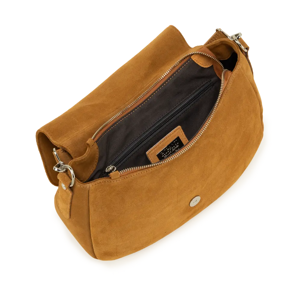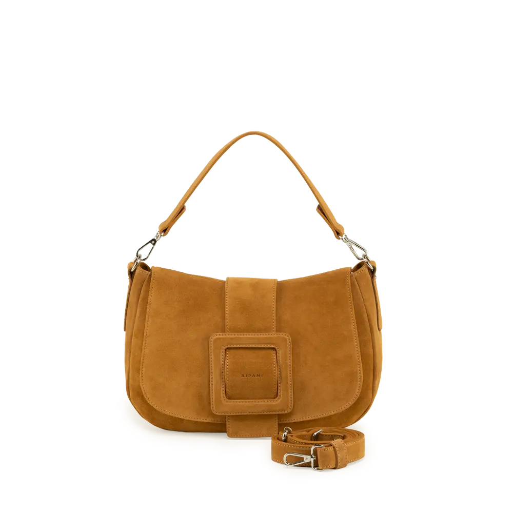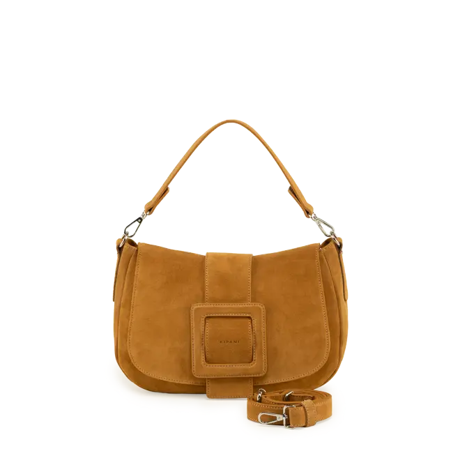 Front flap, magnet and zip closure, handmade buckle, additional adjustable shoulder strap