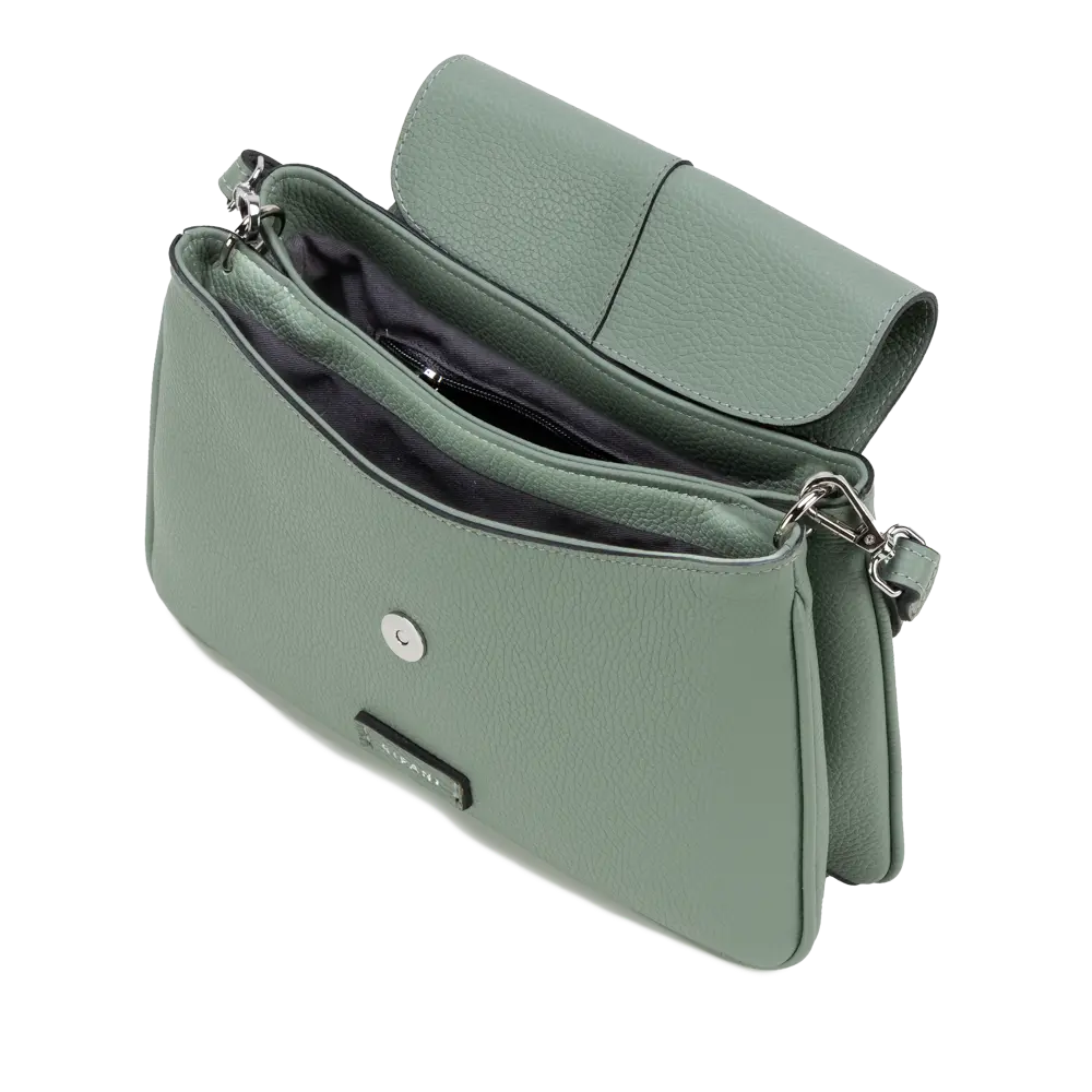 Flap closure with magnet, double compartment, additional adjustable shoulder strap