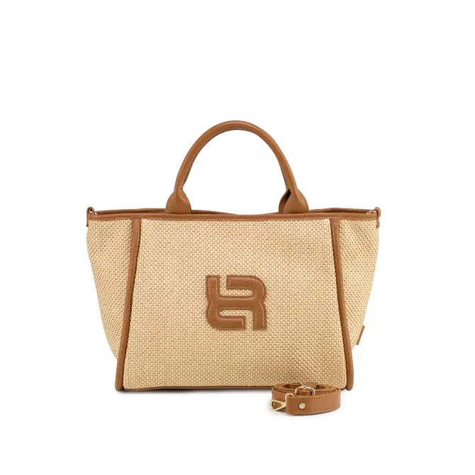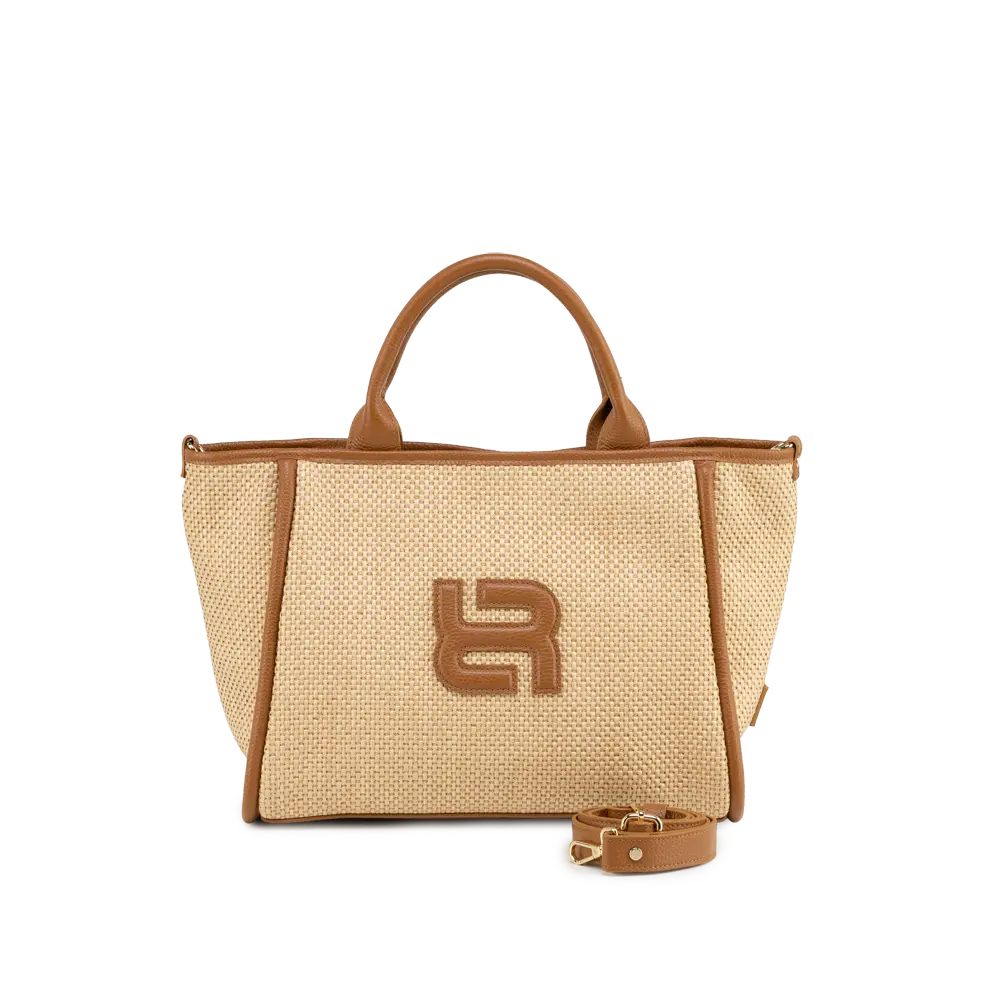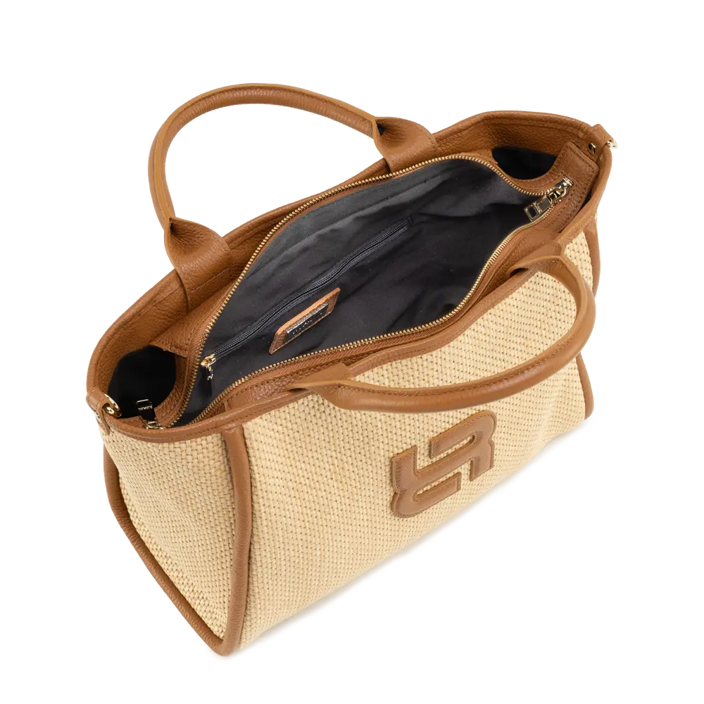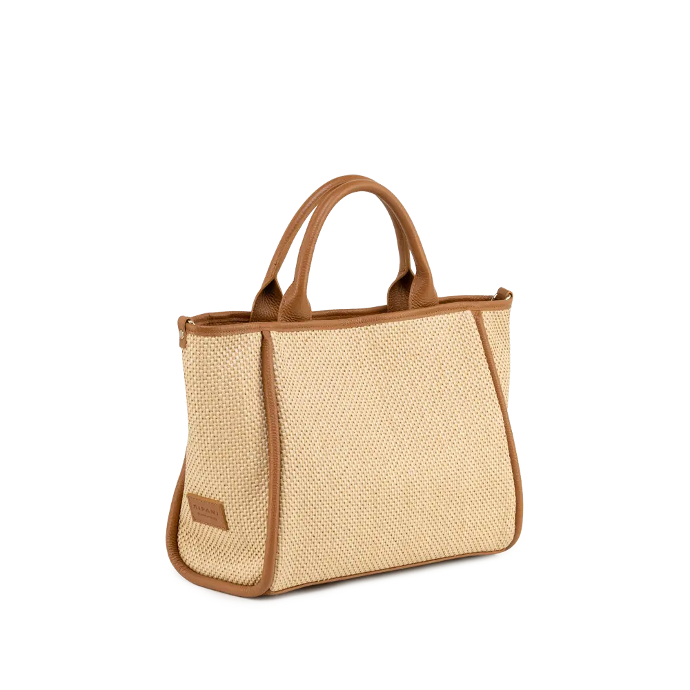 Rafia Chicco rifinita in pelle liscia, Accessori oro chiaro