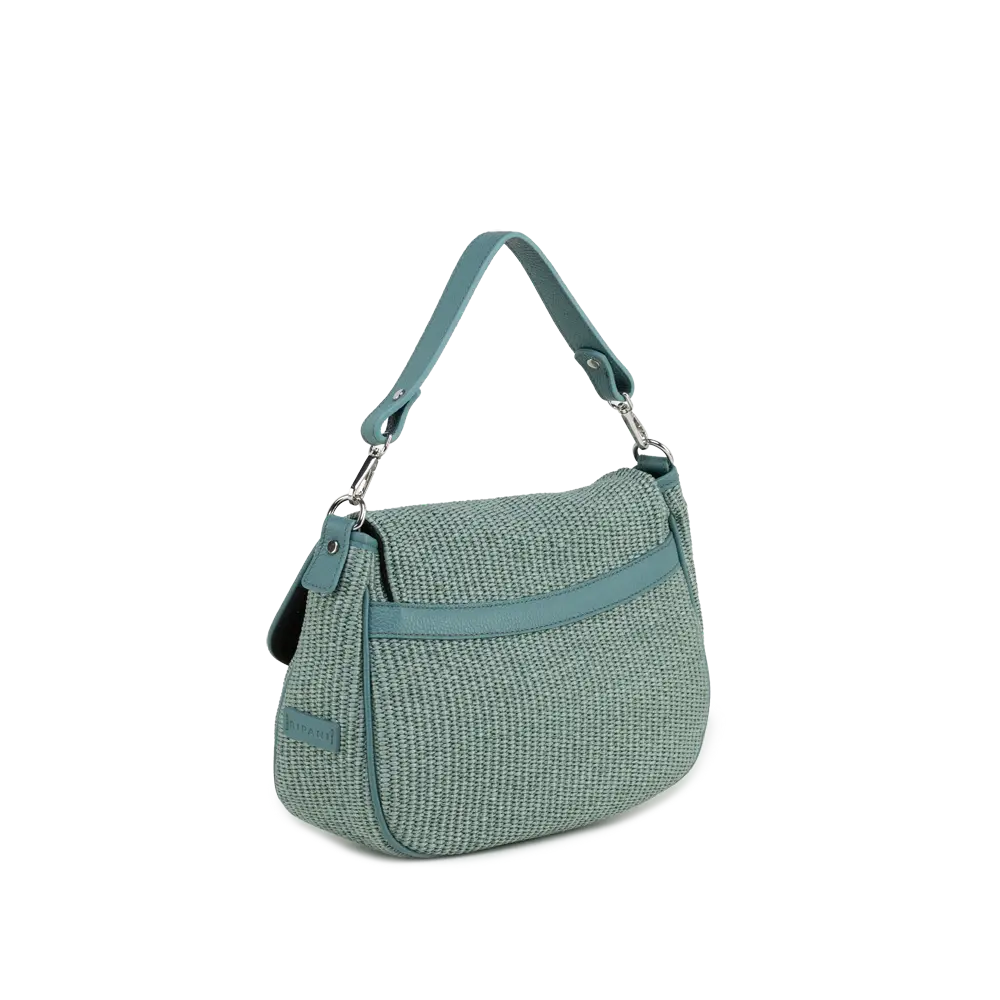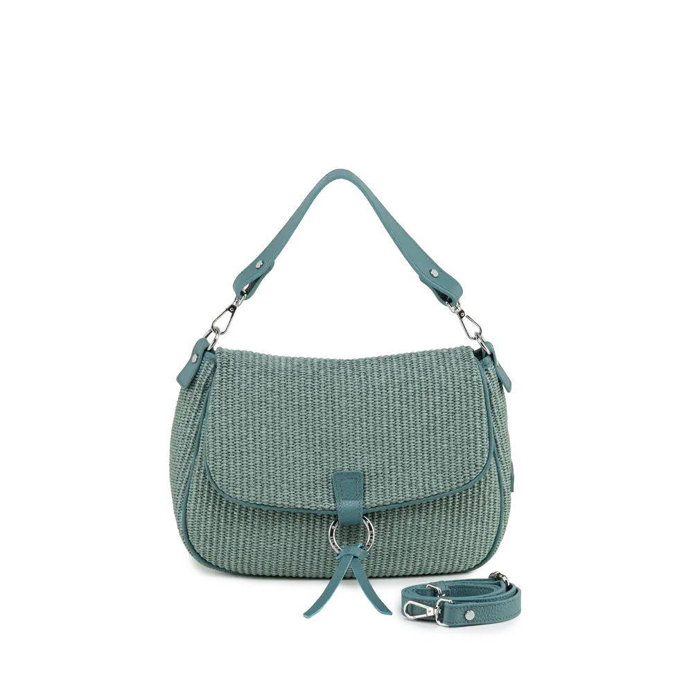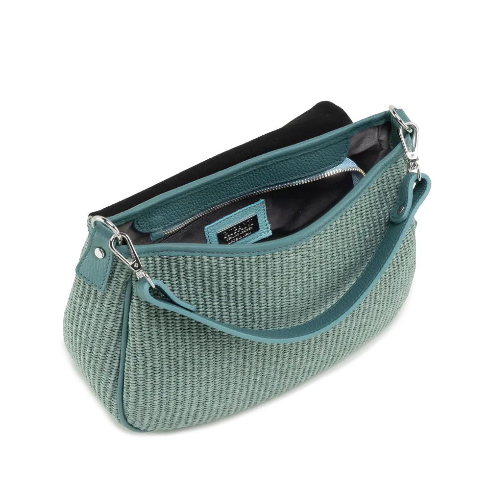 Raffia con finiture in vera pelle effetto cervo, Accessori nichel