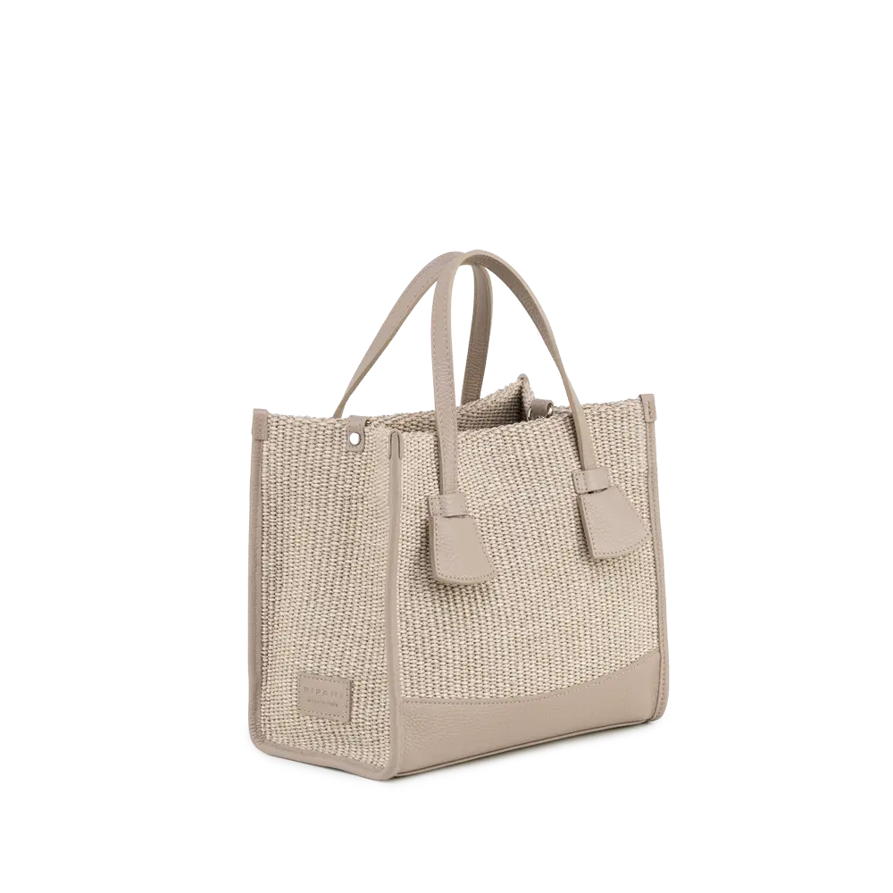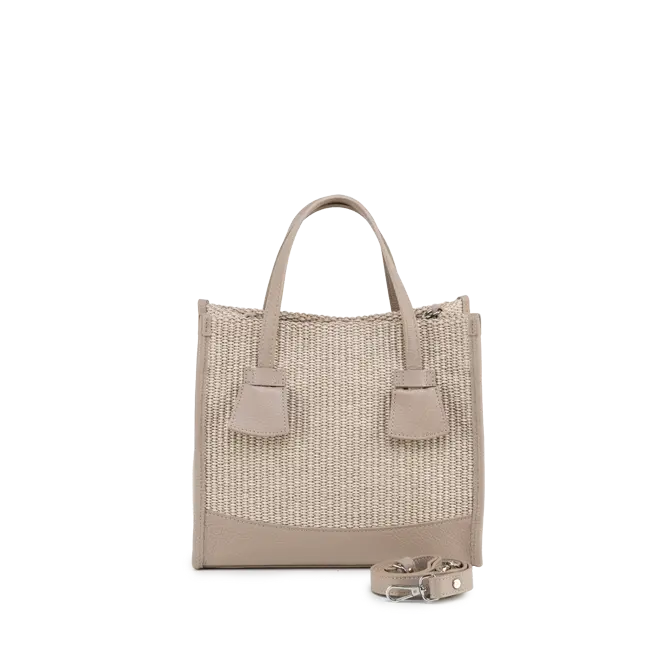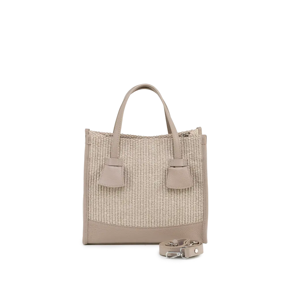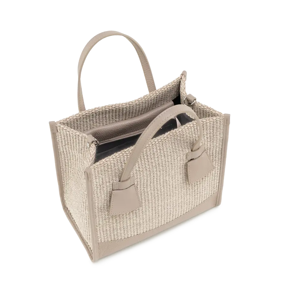 Raffia con finiture in vera pelle effetto cervo, Accessori nichel