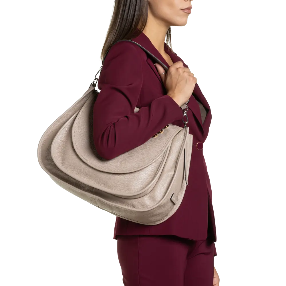 Borsa a spalla con tasca anteriore e tracolla aggiuntiva regolabile