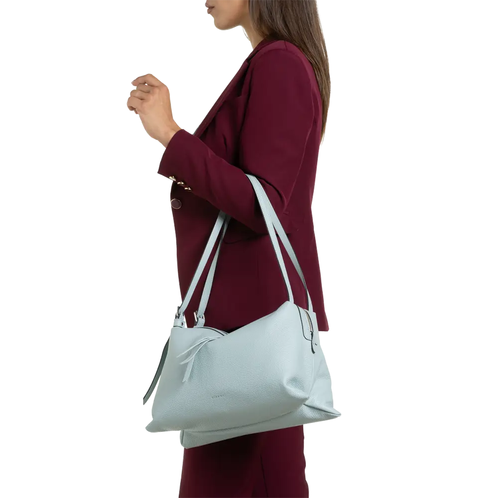 Chiusura zip, Doppio tirante, Taschino interno con zip, Portacellulare interno