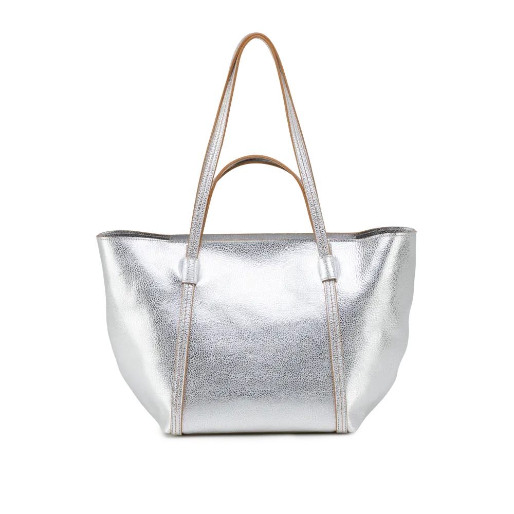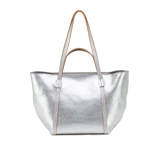 Vera pelle laminata effetto cervo con interno effetto jeans, Accessori nichel