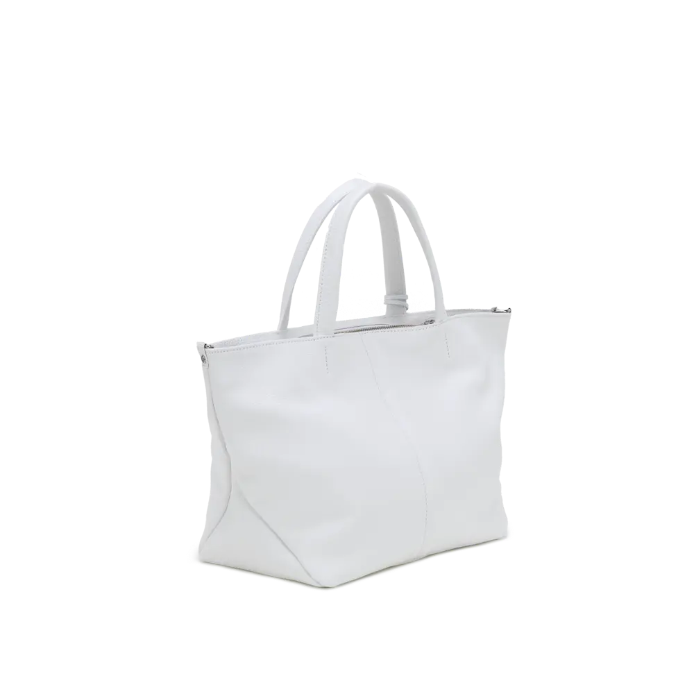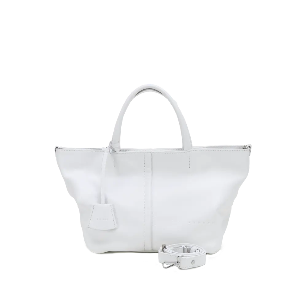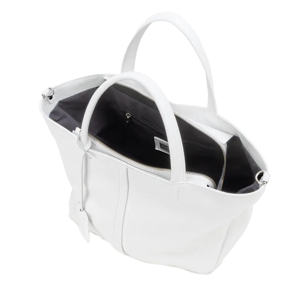 Chiusura zip, tracolla aggiuntiva regolabile, coprichiavi in pelle