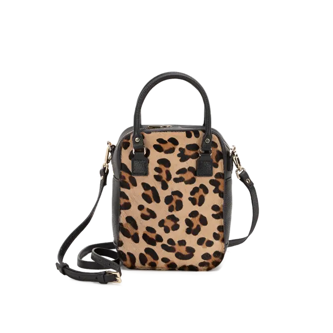 Borsa a mano in vera pelle e cavallino, con tracolla aggiuntiva.