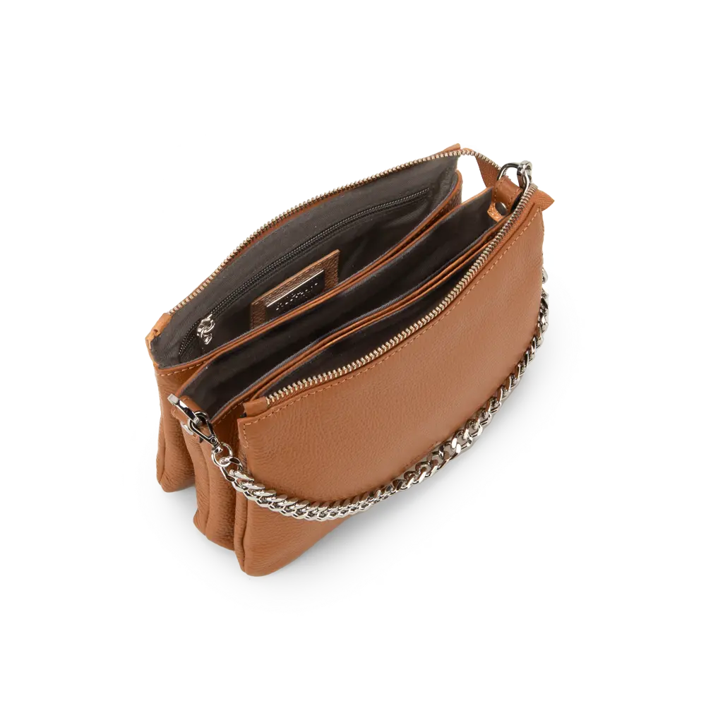 Triplo scomparto, Chiusura zip, Manichetto metallico, Tracolla regolabile, Taschino interno con zip, Portacellulare interno