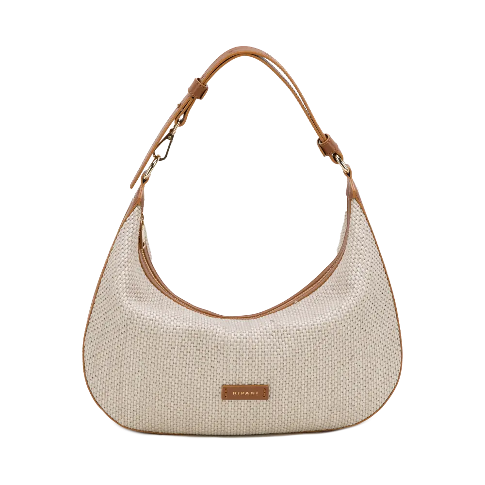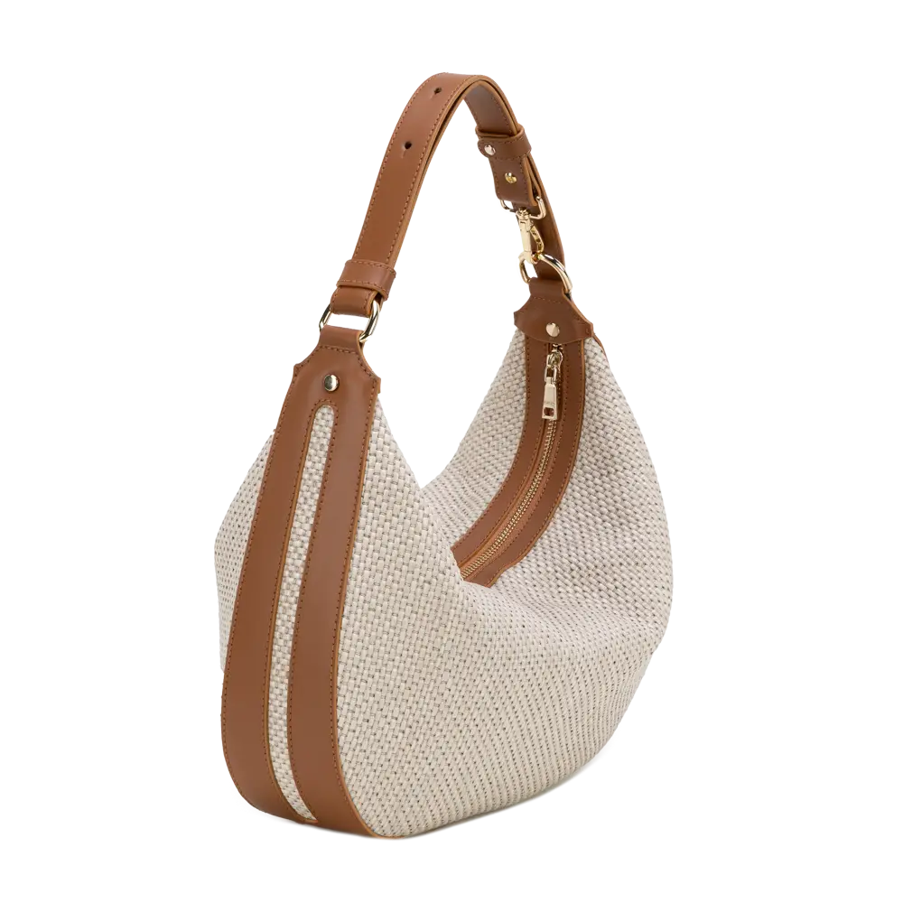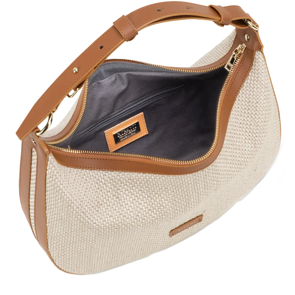 Raffia con finiture in vera pelle liscia, Accessori oro chiaro
