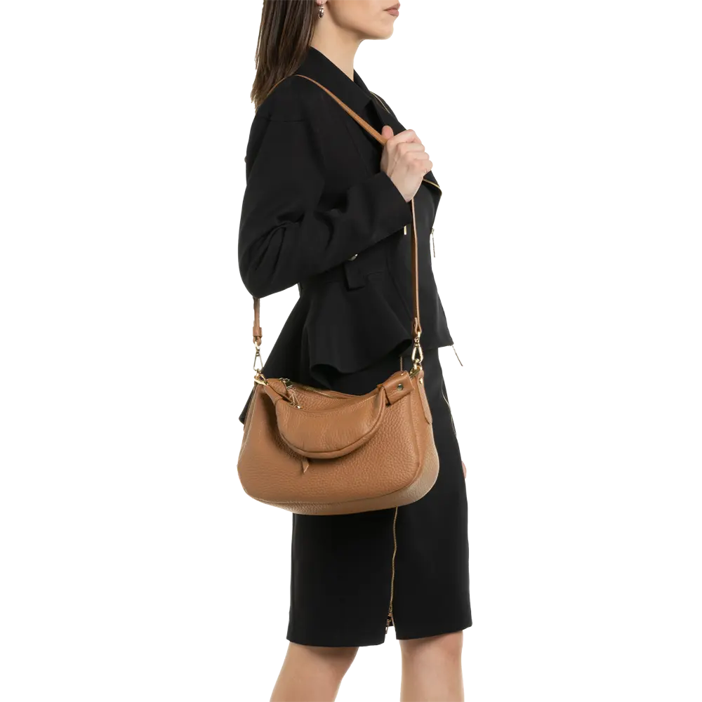 Vera pelle effetto bufalo, Accessori oro chiaro