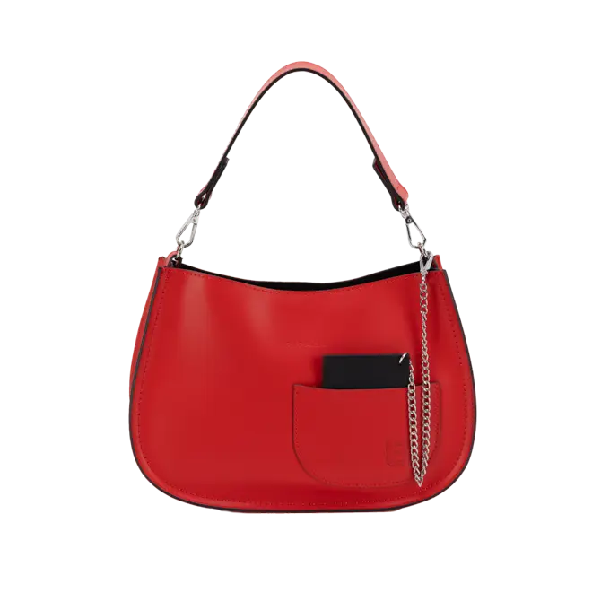 Tasca anteriore, catena in metallo, portacarte in pelle a contrasto