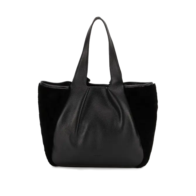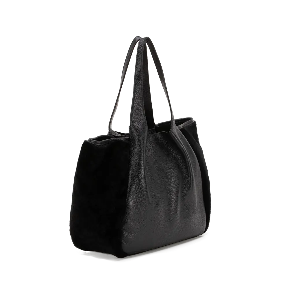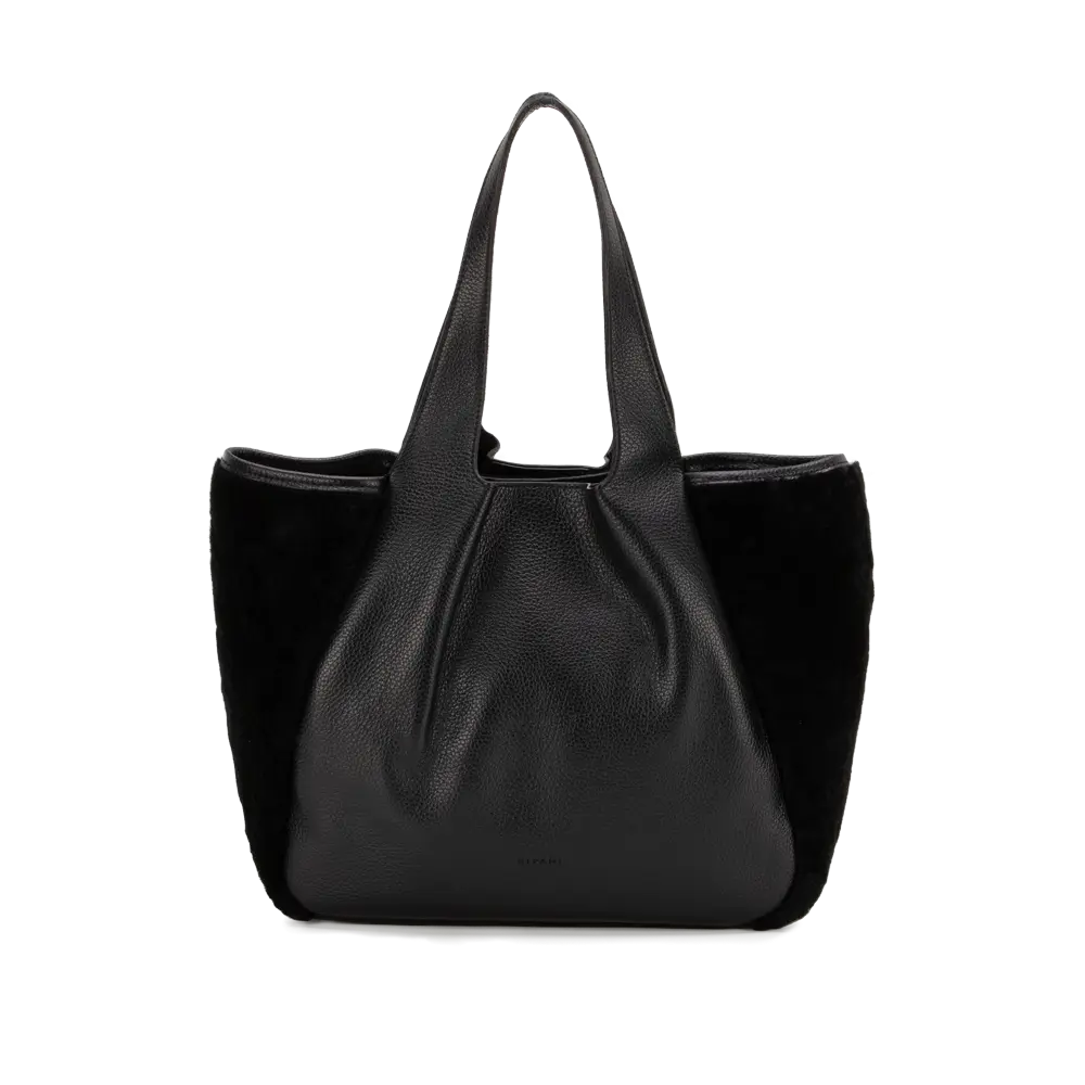 Borsa a spalla in vera pelle con pelliccia di montone.