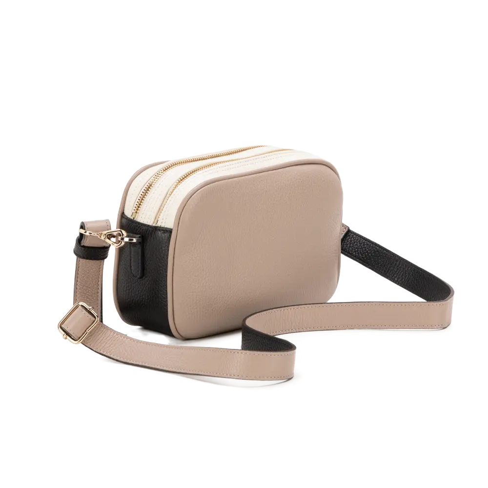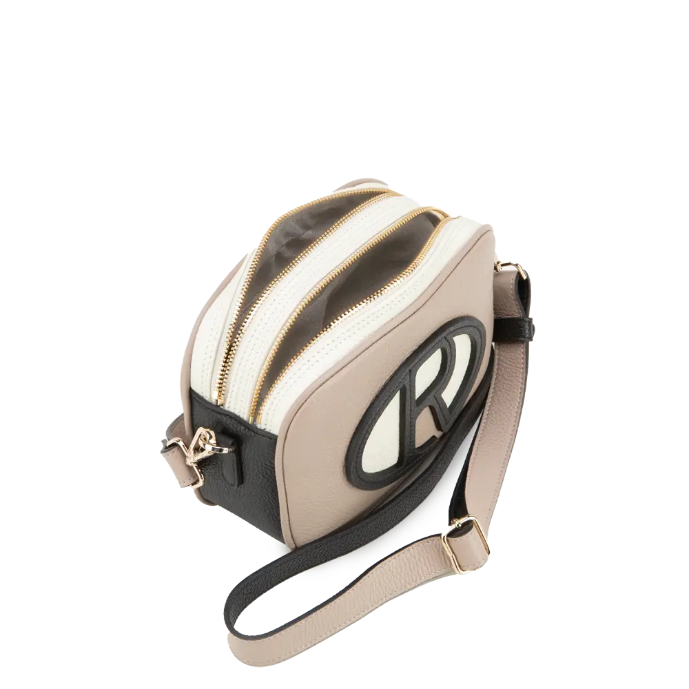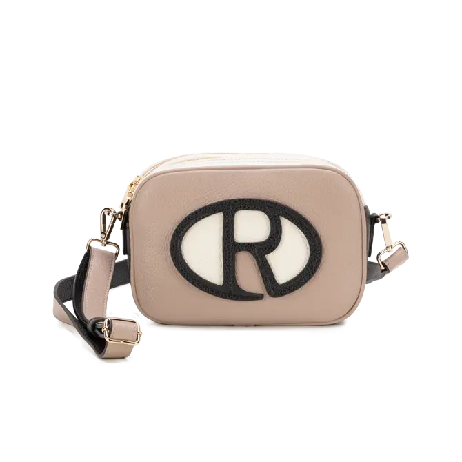 Borsa capiente con logo stilizzato a rilievo. Tracollina in dotazione, pratica in ogni occasione.
