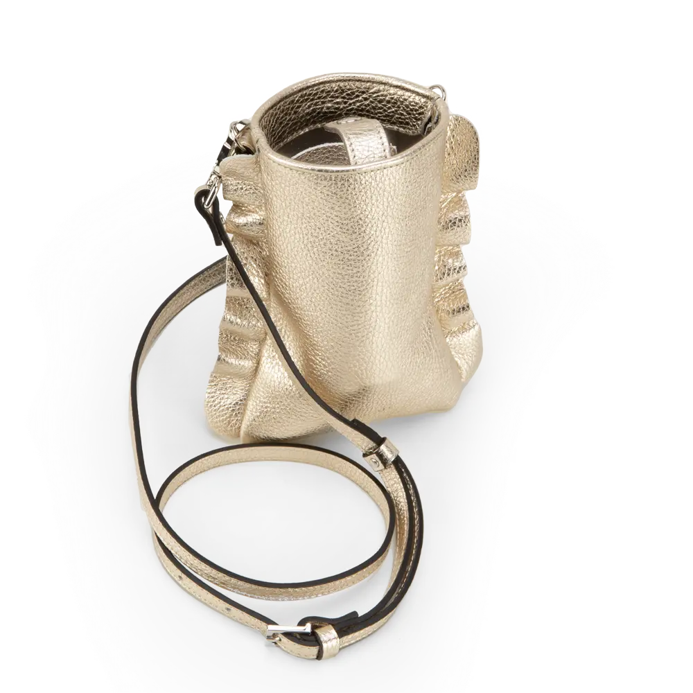 Vera pelle laminata effetto cervo, Accessori oro chiaro